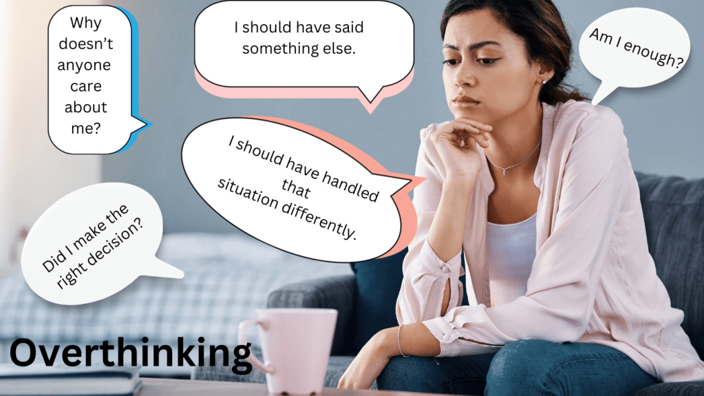 Hi, my name is Tenia and I am an overthinker. I have the gift of taking a simple, single thought and turning it into a catastrophic event, all taking place within my mind. Outwardly, I am withdrawn, moody, sometimes angry, and almost always hard to live with during these episodes of overthinking.